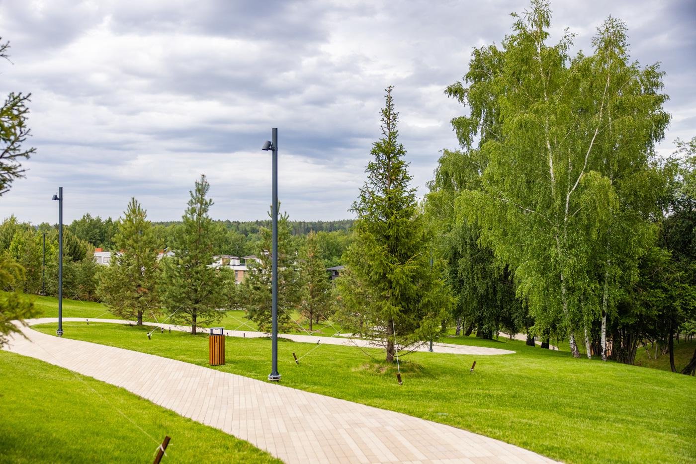 Внутри Crystal Istra коттеджный поселок устроен достаточно продуманно: есть где гулять, есть спортивные зоны, места для отдыха. Это не перегруженная инфраструктура, а именно то, чем реально пользуются. Плюс рядом вся Новая Рига — школы, рестораны, фитнес, сервисы, и это сильно упрощает повседневную жизнь.